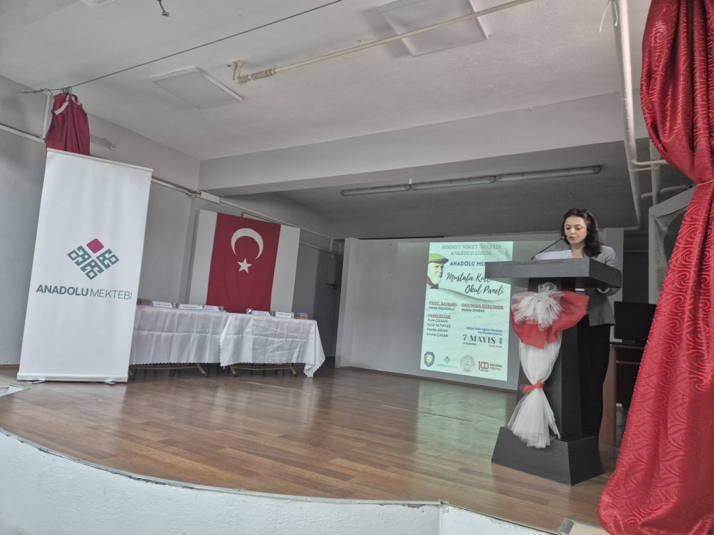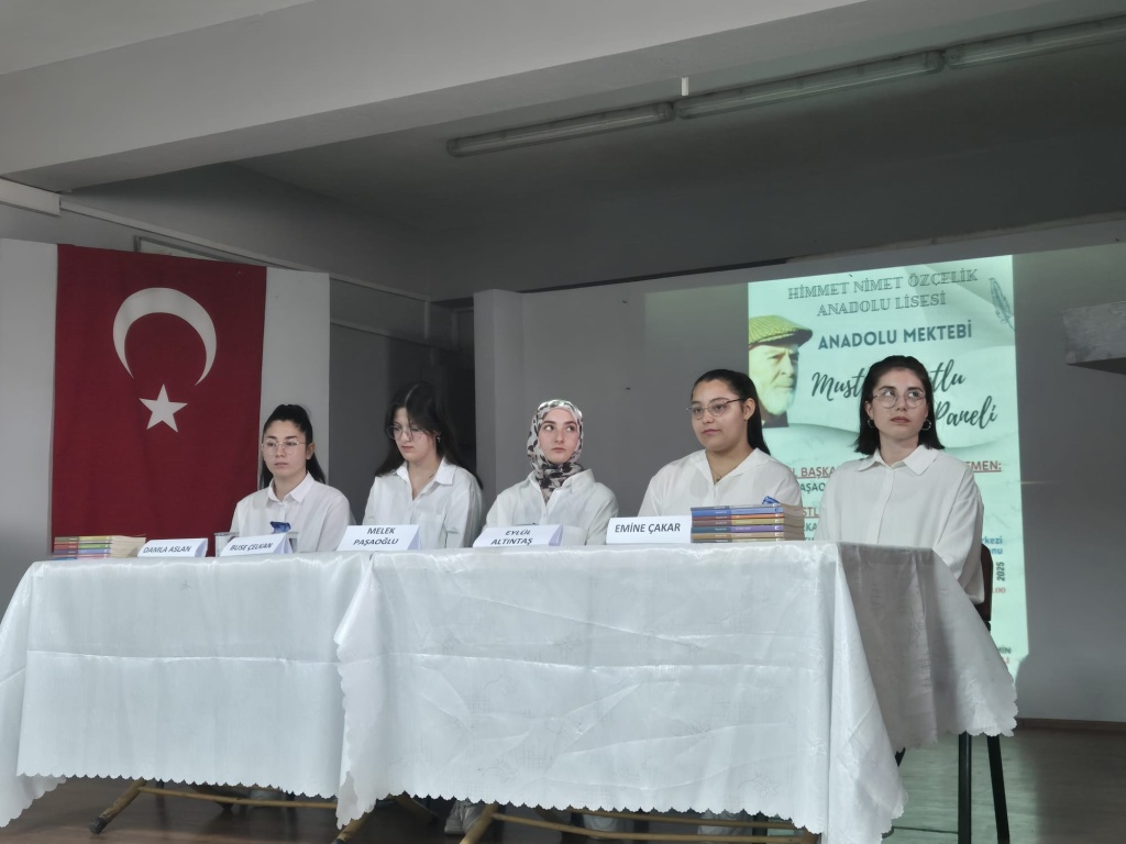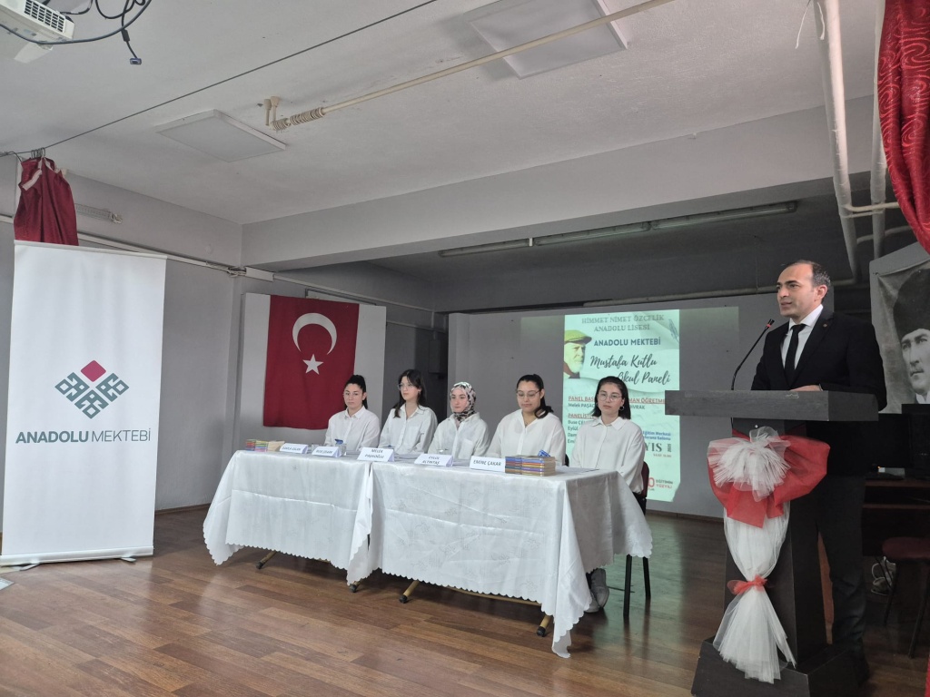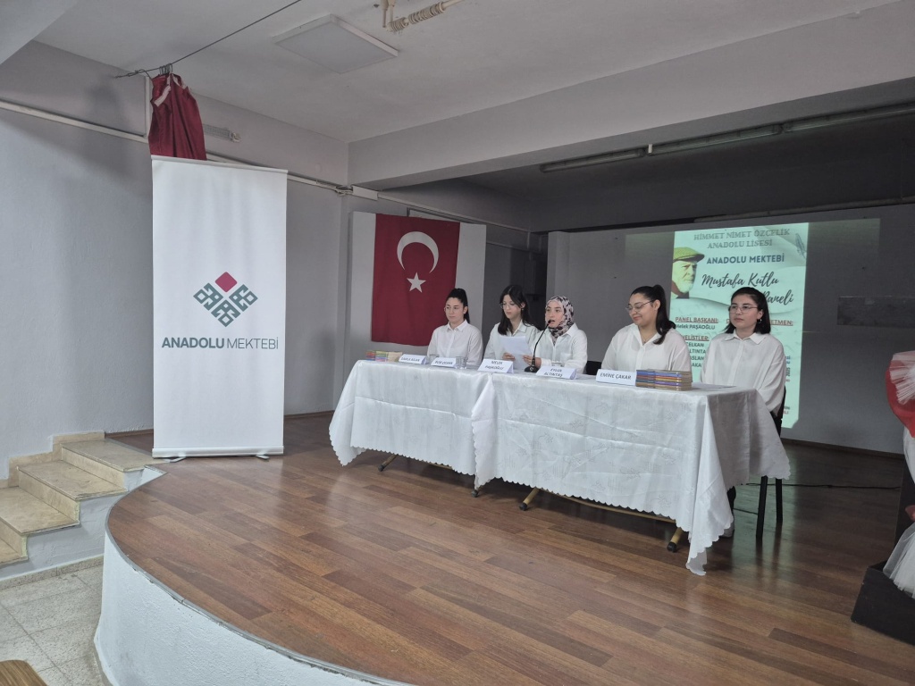 Türk hikâyeciliğinde yarım asırdır varlık gösteren Mustafa Kutlu, Anadolu Mektebi Yazar Okumaları projesi kapsamında Okul Müdürümüz Ramazan KOÇ’un öncülüğünde, Türk Dili ve Edebiyatı öğretmenimiz Melike DIVRAK’ın koordinatörlüğünde organize edilen panelde okulumuz öğrencilerinin sunumlarıyla anlatıldı. Okulumuz Konferans Salonu'nda gerçekleştirilen programda açılış konuşmasını Okul Müdürümüz Ramazan KOÇ yaptı. Panelist öğrencilerimiz Melek PAŞAOĞLU, Damla ASLAN, Eylül ALTINTAŞ, Buse ÇELKAN ve Emine ÇAKAR’ın sunumlarının ardından Türk Dili ve Edebiyatı Öğretmenimiz Emine ACAR panel değerlendirme konuşmasını gerçekleştirdi. İlçe Milli Eğitim Müdürümüz Numan TURAN’ın konuşması ve öğrencilere katılım belgelerini vermeleri ile panelimiz sona erdi. Katılımlarından dolayı İlçe Milli Eğitim Müdürümüz Numan TURAN’a, Şube Müdürümüz Abdurrahman GEVER’e ve İl Koordinatörü Yasemin ÖZBEK’e teşekkür ediyoruz. Bu verimli ve eğitici panelin hazırlanmasında ve sunumunda emeği geçen tüm öğretmen ve öğrencilerimize teşekkür ederiz.